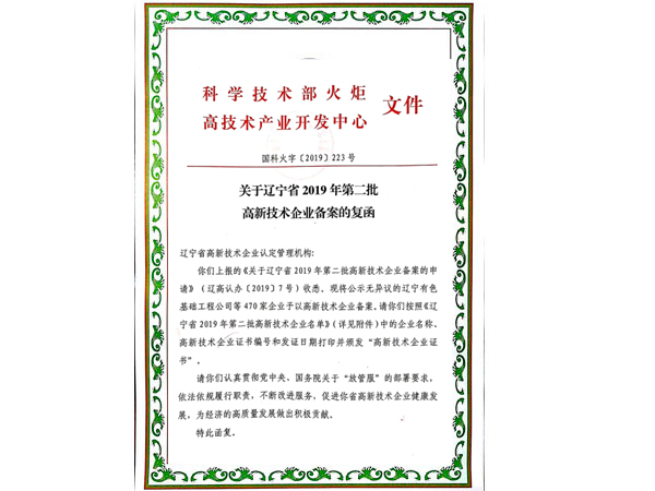 慶祝丹東市隆盛鑄造有限公司榮獲遼寧省2019年第二批高新技術(shù)企業(yè)的榮譽稱號